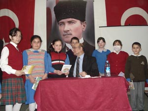 Okul Müdürü Hayri Mısırlıoğlu ise, ?Abant İlköğretim Okulu olarak kitap okumanın faydasını öğrencilerimize en iyi aktaracak kişilerin yazarlarımız olduğuna inandık. Daha önce birçok önemli yazarımızı ağırlayan okulumuz şimdi de Sayın Hamdullah Köseoğlu?nu misafir ediyor. Abant ilköğretim okulu olarak okulumuza daha önce de pek çok yazar getirmiştik. Okulumuzda yazarları konuk etmek bizim için artık gelenek halini aldı. Bu gelenek önümüzdeki günlerde de yaşatılacak.? şeklinde konuştu.