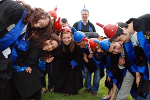 Abant İzzet Baysal Üniversitesi (AİBÜ) Fen Edebiyat Fakültesi Psikoloji Bölümü?nden mezun olan öğrenciler, kafalarına kep yerine plastik huni taktı. Öğrenciler, hunileri havaya fırlatarak sevinçlerini ortaya koydu.