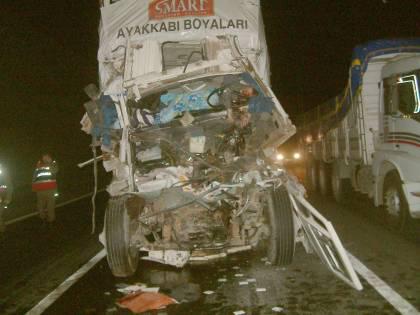 Edinilen bilgilere göre, Ankara’dan İstanbul istikametine gitmekte olan Süleyman Çayanoğlu (38) idaresindeki 18 AE 951 plakalı kamyon, sürücünün dalgınlığı sonucu önünde seyretmekte olan Nihat Eski (35) idaresindeki 37 AU 225 plakalı laminant parke yüklü kamyona arkadan çarptı. Kazada Süleyman Çayanoğlu aracın içinde sıkışarak can verdi. Öndeki kamyonun sürücüsü Nihat Eski ise kaza anında kafasını kamyonun ön çamına çarparak yaralandı. Eski, 112 Acil servis ambulansı ile Düzce Atatürk Devlet Hastanesi e götürülerek tedavi altına alındı.