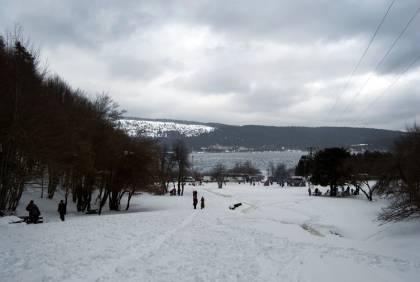 Hafta sonu Abant Tabiat Parkı a gelen tatilcilerden bazıları, yasak olmasına rağmen, fotoğraf çektirmek için, buz tutan Abant Gölü ün üzerinde yürüdü.