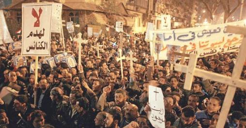 Başkent Kahire’de geçen hafta kiliselerinin kundaklanmasını protesto eden Kıpti Hıristiyanların, Müslümanların saldırısına uğraması sonucu 13 kişi silahla vurularak öldü.
