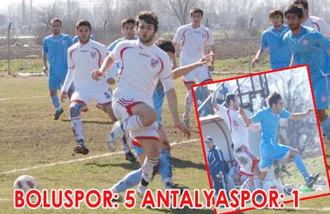 İkinci yarıya 2-0’ın verdiği avantajla sahaya çıkan kırmızı-beyazlılar 59.dakikada Medical Park Antalyaspor’un Tolgahan ayağından buluğu golle farkı 1’e indirdi. Kontra ataklarla Boluspor kalesine yüklenmeye çalışan Medical Park Antalyaspor, istediği vuruşlarda başarılı olamayınca ekibimiz Boluspor akın akın rakip takım oyuncularını hataya zorlamaya başladı. Oltan’la Medical Park Antalyaspor kalesinde gol arayan genç kramponlar 70.dakikada ve 80.dakikada Oltan’ın attığı gollerle farkı 3’e çıkarttı. Karşılaşmanın skorunu belirleyen gol 90.dakikada Harun Tutum geldi. Ekibimiz sahadan 5-1 galip ayrıldı.