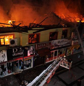 Bu arada, yangında 5 iş yerinin tamamen yandığı, 8 iş yerinde büyük oranda maddi hasar oluştuğu öğrenildi.