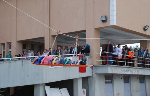 Bolu, Karabük, Bartın, Zonguldak, Düzce ve Sakarya'nın Ulusal Medikal Kurtarma ekipleri, Bolu İzzet Baysal Devlet Hastanesi'nde tatbikat düzenledi. Tatbikata Bolu Belediyesi İtfaiye Müdürlüğü ekipleri de destek verdi. Tatbikatı, Bolu İl Sağlık Müdürü Dursun Koç, Bolu İl Afet Acil Durum Müdürü Hasan Erdoğan, hastane personeli ve hastaneye gelen vatandaşlar izledi. Senaryoya göre, Ulusal Medikal Kurtarma Ekipleri, Bolu'da meydana gelen 7,4 büyüklüğündeki depremin ardından İzzet Baysal Devlet Hastanesi'ndeki yaralıların imdadına yetişti. Ekipler, binanın üst katlarındaki yaralıları, teknik malzeme kullanarak dik eğimde sedyeyle aşağıya indirdi. Yaralılar, ambulanslara bindirilerek başka hastanelere sevk edildi. Yarım saat süren tatbikat başarıyla sonuçlandı.