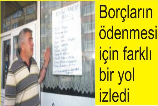 İzzet Baysal Caddesi üzerinde Halk Kıraathanesi'ni işleten İhsan Afacan, bazı müşterilerinden içtikleri çay ve meşrubatların paralarını alamayınca borçluların adlarının yazılı olduğu listeyi işyerinin camına asarak afişe etti. ‘Kahvehaneye borcu olanlar’ başlıklı yazının altına borcu olan 10 kişinin adını yazan İhsan Afacan, listenin altına da "Borcunu ödemeyenlerin isimleri başka bir listede asılacaktır" diye bir not yazdı. Borçlarını istemesine rağmen alamadığını belirten İhsan Afacan, 100 ile 500 lira arasında borcu olanlar olduğunu açıklayarak, "Borçlarımı alamadığım için ilan etmek zorunda kaldım. Defalarca istememe rağmen bir türla alamadım. Kiminin 1 yıl, 3 yıl, hatta 5 yıllık borcu olan var. Eğer borçlarını yine ödemezlerse avukat kanalı ile almayı düşünüyorum" dedi. Afacan, yazıyı görerek borcunu ödeyeceğini söyleyenlerin olduğunu ifade etti. İhsan Afacan, "Yazıyı görünce utanan da var, hiç utanmayan da. Hatta zevk alan bile var. Borcumu istiyorum hemen cep telefonunu çıkarıyor, konuşur gibi yapıp bana konuşma fırsatı bile vermiyor. Bana borcu olan başka kahvehaneye gidiyor, başka kahvehaneye borcu olan da benim kahvehaneye gelerek gününü gün ediyor. Ne zamana kadar böyle devam edecek bilemiyorum. İsmi listede olmayanlar 'Benim ismimi asmamışlar' diye merak etmesin, herkesi sıfatıyla şahsiyetiyle belirteceğim" diye konuştu.
