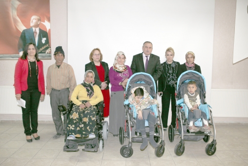Bu kapsamda iki adet engelli çocuk arabası, bir adet de akülü sandalye düzenlenen törenle engelli vatandaşlara verildi. Bolu Belediyesi Kültür ve Sosyal İşler Müdürlüğü İmarethane Sosyal Tesisleri’nde gerçekleşen törene Belediye Başkanı Alaaddin Yılmaz, Başkan Yardımcısı Emine Davarcıoğlu, Kültür ve Sosyal İşler Müdürü Güler Mert ve engelli sandalye almak üzere gelen engelli vatandaşlar ile aileleri katıldı. Törende Belediye Başkanı Alaaddin Yılmaz tarafından iki adet engelli çocuk arabası, bir adet de akülü sandalye daha önce Bolu Belediyesi’ne gelerek müracaatta bulunan vatandaşlara hediye edildi.
