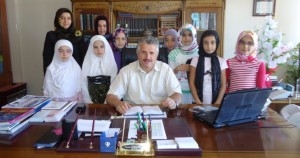 Kendisi ve biriktirdikleri yüksek miktardaki bayram harçlığını bağışlayan Aslıhan Halıcıoğlu ve diğer sınıf arkadaşları ile beraber Gerede Müftülüğüne gelen Saliha Nur, aralarında topladıkları miktarı İlçe Müftüsü Hasan İzmirli’ye teslim etti.