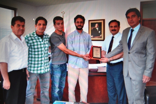 Güçlü Özen, Zafer Doğru ve Aydın Gönül’den oluşan İBUDAK ekibini kabul eden Prof. Dr. Hayri Coşkun; “Üniversitemizin kuruluşunun 20. Yılı dolayısıyla Corona zirvesi ve Pamir dağlarına tırmanarak bize bu gururu yaşatan ekibimizi tebrik ediyoruz ve kendilerine teşekkür ediyoruz. Kazasız belasız geri döndükleri için de ayrıca çok mutluyuz” dedi Rektör Yardımcısı Prof. Dr. Akçahan Gepdiremen ve Sağlık, Kültür ve Spor Daire Başkanı Dursun Özcan’ın da katıldığı kabulde Rektör Prof. Coşkun, İBUDAK üyelerinden Güçlü Özen’e topluluk adına bir plaket verdi. Topluluk üyelerinden Aydın Gönül’de rektöre, Kırgızistan’a ait keçeden yapılmış yöresel bir şapka hediye etti.