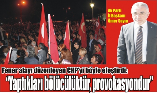 Cumhuriyeti kutlamayı bölücük ve provakasyon olarak görmek, bu yönde açıklamalar yapmak provakatörlüğün ve bölücülüğün ta kendisidir. Ayrıca bu organizasyonu keşke chp tek başına değilde diğer siyasi partiler ve stklarla birlikte yapabilseydi işte o zaman bu fener alayı çok daha anlam kazanırdı.