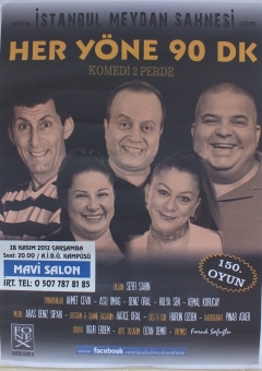 İstanbul Meydan Sahnesi tarafından hazırlanan “Her Yöne 90 Dakika” isimli komedi oyunu 28 Kasım 2012 saat 20:00’de Abant İzzet Baysal Üniversitesi Mavi Salonda sanatseverlerin beğenisine sunulacak. 2 perdelik komedi oyununda, televizyon dünyasının sevilen oyuncularından Ahmet Çevik, Deniz Oral, Aslı Omag, Hülya Şen, Kemal Kuruçay gibi isimler yer alıyor. Seyircilerinde rol aldığı oyunda, bazı televizyon programları nedeniyle ülkenin gerçek gündeminin unutulması eleştiriliyor.