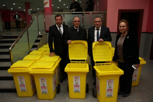Konuşmaların ardından Belediye Başkanı Alaaddin Yılmaz, proje ile ilgili özel olarak tasarlanan toplama kutularını mahalle muhtarlarına teslim ederek fotoğraf çektirdi.