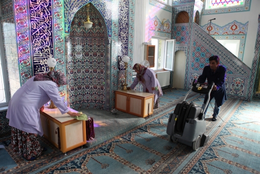 Bolu Belediyesi Kültür ve Sosyal İşler Müdürlüğü’nün başlattığı cami temizleme çalışmaları tüm hızıyla devam ediyor. Belediye Kültür Sosyal İşler Müdürlüğü nezaretinde yürütülen çalışmalarda temizlik personeli, kent merkezindeki camilerde halı yıkamadan, camların silinmesine kadar tüm temizliğini yapıyor. Yıl boyunca devam eden temizlik çalışmalarında her gün dört camide ve ayda bir de aynı camide detaylı temizlik gerçekleştiriliyor.