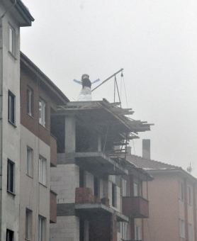 Karamanlı mahallesi Konuralp Caddesi Ertuğrul Sokak üzerinde bulunan 5 katlı bir inşaatın çatısındaki kardan adamı görenler şaşırdı. Geçtiğimiz ay yoğun kar yağışının etkisi altında kalan kent merkezinde karlar hala erimezken, inşaat işçileri tarafından yapılan kardan adam görenlerin beğenisini kazandı. Kar yağışı nedeniyle çalışmalara ara verilince, boş vakitlerini değerlendirmek isteyen işçiler kardan adam yaptı. Kardan adamın 5 katlı binanın çatısında yer alması dikkat çekerken, inşaatın yanından geçen vatandaşlar gülerek tepki verdi.