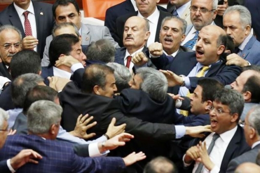 MHP'nin IŞİD ile ilgili grup önerisinin oylaması sırasında Meclis'te yumruklar konuştu. Oylama sırasında MHP'li Ali Uzunırmak, Genel Kurulu'nda olmamalarına rağmen bazı AK Partili vekillerin oy kullandığını iddia ederek AK Partilileri sahtekarlıkla suçladı. Bunun üzerine AK Parti Malatya Milletvekili Mustafa Şahin, Uzunırmak'ın üzerine yürüdü. Uzunırmak ile Şahin arasında tekme tokat kavga yaşandı. Kavga sırasında Uzunırmak yere düştü, Şahin'in ise kaşı açıldı.