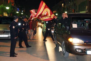 Galatasaray'ın derbi maçta Fenerbahçe'yi yenerek şampiyonluk yolunda büyük bir avantaj elde etmesi üzerine Galatasaraylı taraftarlar şehir merkezinde araç konvoyu oluşturarak sevinç gösterilerinde bulundular.