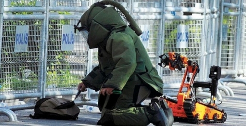 Daha sonra bomba imha uzmanı tarafından fünyeyle patlatılan paketten çöp çıktı.