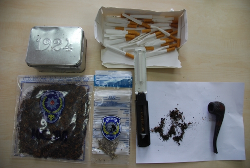 Bolu’da uyuşturucu madde ticareti yaptığı tespit edilen Ş.E isimli şahsın evinde ve aracında yapılan arama neticesinde içime ve satışa hazır 55 gram tütünle karıştırılmış kubar esrar maddesinin yanı sıra 1 adet pipo, 1 adet sigara sarma makinası, boş makaronlar ve 5 gram hint keneviri tohumu ele geçirildi.