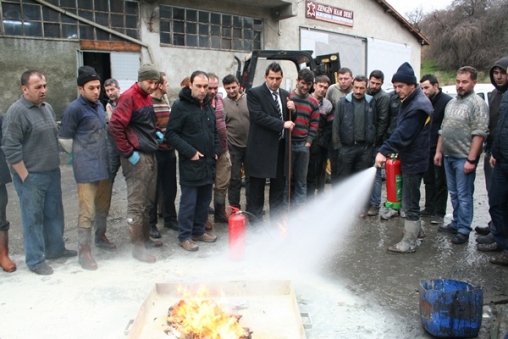 Yangınlarda her söndürücü ile her yangının söndürülemeyeceğini söyleyen Seçen, ‘’Suyun kullanıldığı tek yangın türü, A sınıfı katı yangınlardır. Diğer yangın türlerinde su tehlikeli yada ölümcül olabilir. Yangınlara karşı silahlarınız söndürücülerdir. Bunlar içinde iki tane madde var. Biri söndürücü maddeler, diğeri ise yangını dışarıya atmaya yarayan basınçtır. Basınçları saatinden kontrol edebilirsiniz, sürekli yeşil konumda olmak durumundadır, yeşilde değilse çalışmayacaktır. Yangını haber aldıktan sonra tüpü 5 metreye kadar taşıyın eğer tüpü açıp da gidersek boşaltarak gideceği için 6 ila 9 dakika arasında olan ömrü azalacaktır, tüpü alttan tutuyorsunuz pim boşta kalıyor’’ diye konuştu. Eğitim sonunda katılımcılara uygulamalı tatbikat yaptırdı.