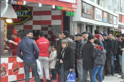Bedava dönerden almak isteyen vatandaşlar adeta bir birleriyle yarıştı. İzzet Baysal Caddesi üzerinde açılış nedeni ile ikram edilen bedava döner izdihama neden olurken, kuyrukta bekleyen çocuklar ve yaşlılar zor anlar yaşadı. Firma yetkilisi, “250 kilo eti halkımıza bedava dağıtıyoruz. Hem tanıtım amaçlı hem de halkımızın lezzetimizi tanıması için bedava döner dağıtıyoruz. Türkiye’de Bolu’da dâhil olmak üzere 75 tane şubemiz bulunmaktadır” dedi.