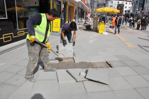 Daha sonra ise, yeni ve sağlam taşlar yerlerine konuldu. Diğer taraftan, cadde üzerinde bulunan ve görme engellilerin rahat yürümesini sağlayan sarı renkli kabartmalar da elden geçirilerek yenilenmeye başladı.