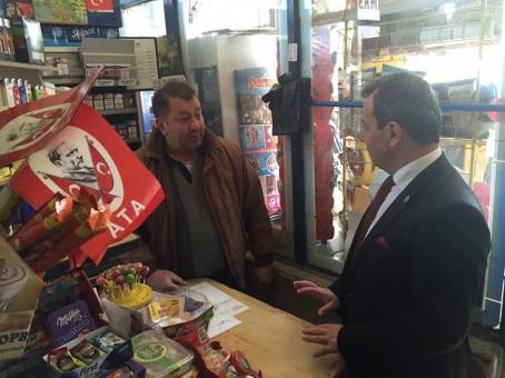 Özcan, programına partililerle birlikte esnaf ve ev ziyaretleriyle devam etti.
