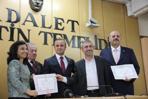Ak Parti Bolu Milletvekilleri Ali Ercoşkun ve Fehmi Küpçü mazbatalarını Bolu Adliyesinde aldılar. Kalabalık bir partili grubuyla gelen Milletvekillerine Bolu Belediye Başkanı Alaaddin Yılmaz, İl Başkanı Yüksel Coşkunyürek, Ak Parti 3. sıra milletvekili adayı Mehmet Emin Güz, il ve ilçe teşkilatları eşlik ettiler.