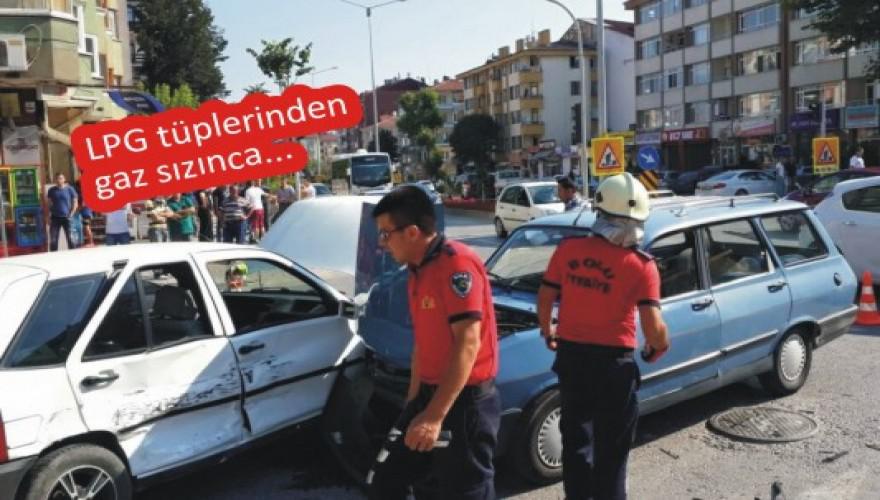 Kazada yaralanan olmazken, LPG tüplerinden sızan gaz korkuya neden oldu.