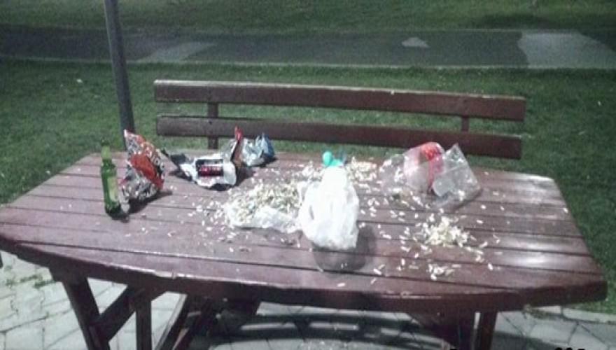 Yukarı da fotoğraf Karaçayır parkında çekildi. Masaların üzerindeki çöpler, çekirdek kabukları rüzgarla birlikte parkın her tarafına yayılıyor. Tüm parklarda ve mesire alanlarında bu tip manzaralara rastlanırken, çöplerini bile toplamaktan bu aciz insanları medeni olmaya davet etmeyi borç biliyoruz.