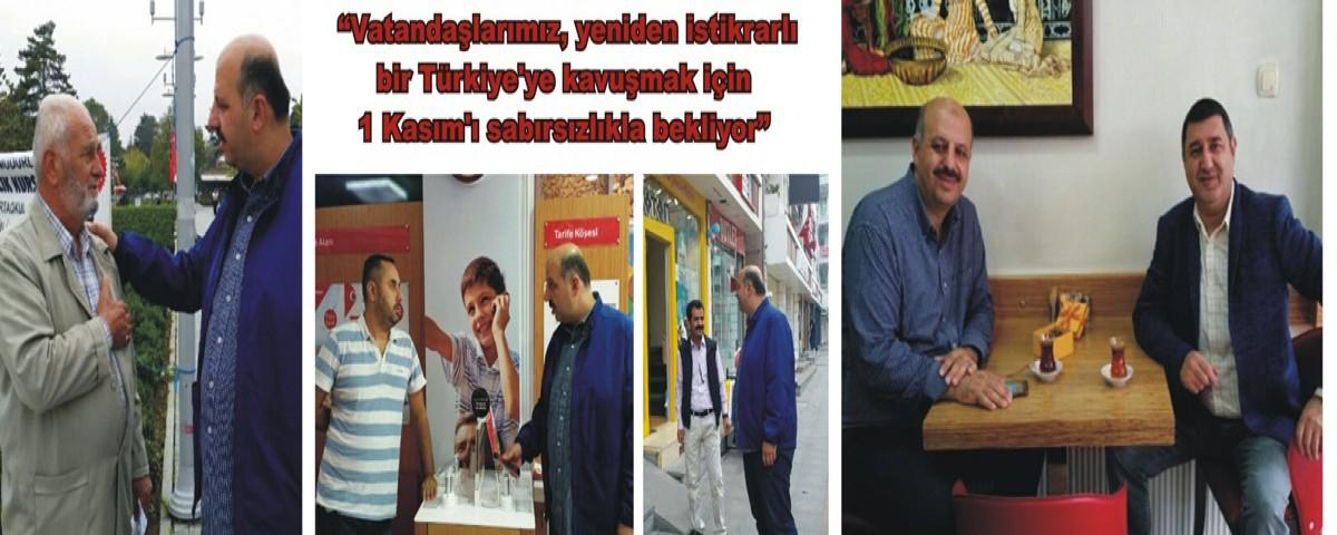 Cadde esnaflarını bir süre daha ziyaret eden Ercoşkun, temasları sonrası yaptığı değerlendirmede, "Vatandaşlarımız, yeniden istikrarlı bir Türkiye'ye kavuşmak için 1 Kasım'ı sabırsızlıkla bekliyor" dedi.