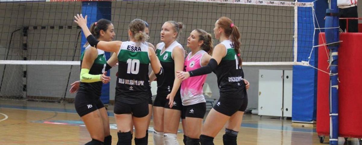 Türkiye Voleybol Bayanlar 2.Ligi B Grubunda mücadele eden Bolu Belediyespor bayan voleybol takımı ligin 8.haftasında deplasmanda Bartın Polisgücü bayan voleybol takımı ile karşı karşıya geldi. Geçtiğimiz hafta içinde kendi sahasında lig lideri Ordu Telekom bayan voleybol takımı ile karşılaşan ve 5 haftalık bir serinin ardından ilk mağlubiyetini alan Bolu Belediyespor bayan voleybol takımı Bartın deplasmanından galip ayrılarak tekrar çıkışa geçmek istiyordu. Geçen sezon olduğu gibi bu sezonda 1.lig hedefi ile sezona başlayan Bolu Belediyespor Bartın deplasmanında karşılaşmaya iyi başladı ve ilk seti farklı bir şekilde 25-13 önde kapattı ve maçta skoru 1-0'a getirdi. İkinci sette rakibi karşısında pek bir varlık gösteremeyen Bolu Belediyespor bayan voleybol takımı bu seti farklı bir şekilde kaybetti ve maçta skor 1-1'e geldi. 3.sete de iyi başlayan Bartın temsilcisi Bartın Polisgücü bayan voleybol takımı bu seti de 25-20 kazanarak skoru 2-1 yaptı. 4.sette tekrar geri dönen Bolu Belediyespor'un sultanları bu 25-19 kazandı ve durumu 2-2 yaptı. Tie-break setine uzayan mücadelede sete iyi başlayan Bolu Belediyespor set boyunca önde götürdü ve seti 15-11 kazanarak bir hafta aradan sonra tekrar galibiyetlerine kaldığı yerden devam etti. Bolu Belediyespor'un sultanları ligin 9.haftasında kendi sahasında 21 Kasım Cumartesi günü saat 15:00'de oynanacak maçta Kazan Belediyespor'u konuk edecek.