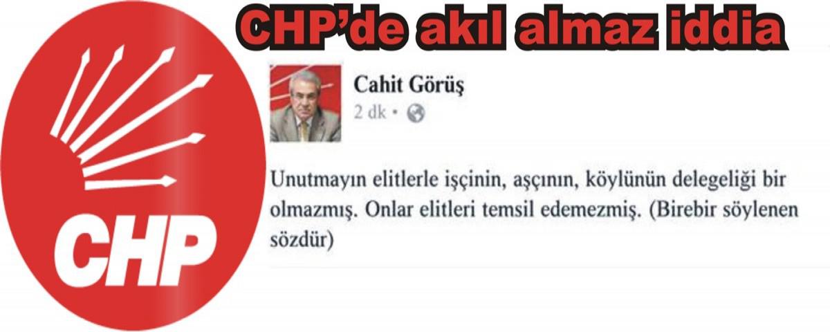 Yıllardır CHP’ye gönül veren ve Milletvekili Tanju Özcan’a yakınlığıyla bilinen Cahit Görüş’ün ortaya ayılan iddiaları doğrulayan bir facebook iletisi akıllara durgunluk verdi. Görüş, “Unutmayın elitlerle işçinin, aşçının, köylünün delegeliği bir olmazmış. Onlar elitleri temsil edemezmiş. (Birebir söylenen sözdür)” ifadelerini yazdı.