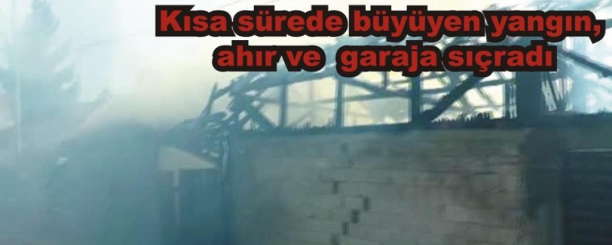 Kısa sürede büyüyen yangın, ahır ve garaja sıçradı.