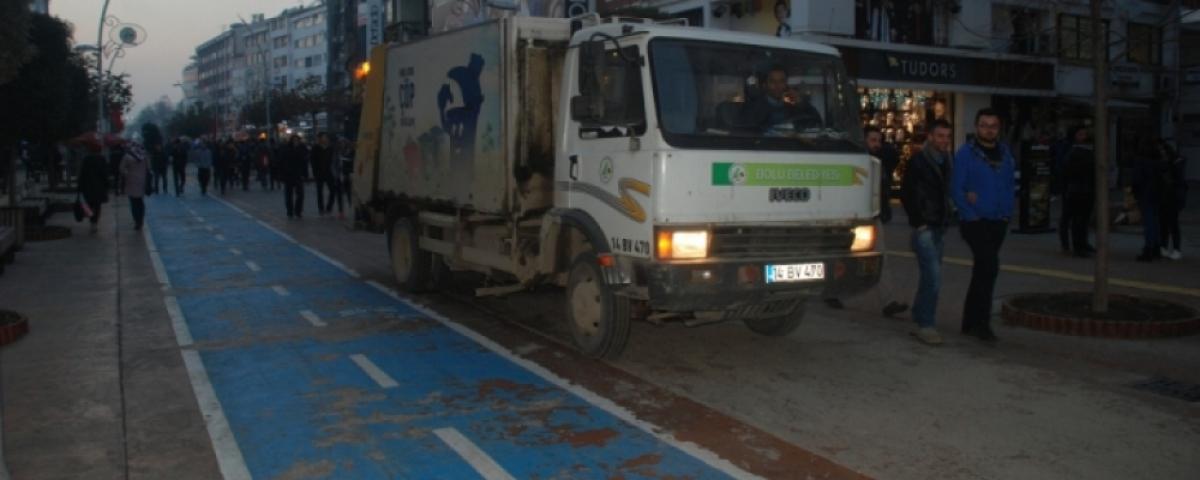 Bolu Belediyesi, İzzet Baysal Caddesi’nde yaptığı değişiklik ile evsel atıkların toplanmasında yeni bir uygulamaya yürürlüğe koydu. Daha öncede İzzet Baysal Caddesi üzerinde iş yeri ve ikameti bulunanlar, belirlenen saatlerde evsel atıklarını cadde üzerine bırakıyor, belediyeye bağlı ekipler bunları çöp arabasına yüklüyordu.