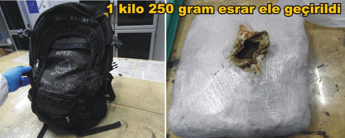 Otobüste yolcu olarak bulunan bir şahsın bagaj çantasına narkotik köpeğinin tepki vermesi üzerine yapılan kontrolde yaklaşık olarak bir kilo 250 gram esrar ele geçirildiği kaydedildi.
