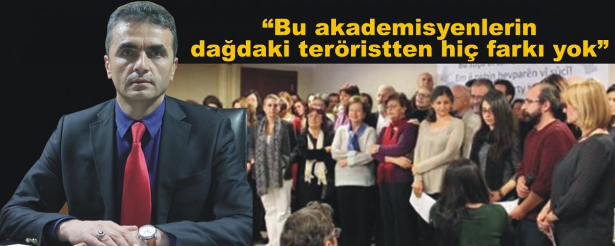 Bunların hakkında tabiî ki soruşturmalar başlatılmıştır. Devletin yetkilileri her türlü sorumluluğu yerine getireceklerdir. Ama ben buradan bir defa daha kendilerini kınamak istiyorum. Hatta ve hatta şehitlerimiz anısına, onların hayatları pahasına kendilerini lanetlediğimi de belirtmek istiyorum. Çünkü bu ülkenin ekmeğini yiyeceksiniz, suyunu içeceksiniz ondan sonra şehit düşen sivil vatandaşımızı, askerimizi, polisimizi görmeyeceksiniz ve Devlet terörü var diye eleştireceksiniz. Son zamanlarda bu akademisyenleriz diyenleri destekleyenleri de biliyorsunuz. Bunlar adına açıklama yapanları da biliyoruz” şeklinde konuştu.Haber Merkezi