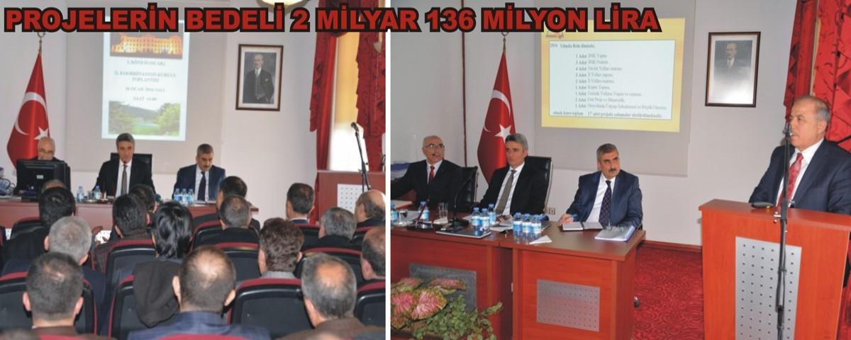 Bolu Valiliği’nde 2016 yılı I. Dönem (Ocak) İl Koordinasyon Kurulu toplandı. Toplantıya kaymakamlar, belediye başkanları, yatırımcı kuruluşların bölge ve il müdürleri katıldı. Toplantının açılışında bir konuşma yapan Vali Aydın Baruş, Bolu ili genelindeki projeler ve çalışmalar ile ilgili bilgiler almak için toplandıklarını belirterek yeni senede daha çok proje üretilip hayata geçirilmesi için çalışılacağını söyledi. Baruş, 1 Ocak - 31 Aralık 2015 Dönemi itibari ile İl genelinde 82'si Bölge Müdürlükleri, 10'u Üniversite, 5'i Genel Müdürlük, 149'u İl Müdürlükleri, 113'ü Kaymakamlıklar (Köylere Hizmet Götürme Birlikleri) ve 137'si Belediyelere ait olmak üzere toplam 496 proje yürütüldüğünü kaydetti.