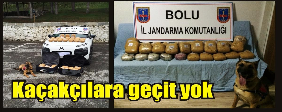 Edinilen bilgiye göre, Bolu İl Jandarma Komutanlığı’na bağlı ekipler, TEM Otoyolu mevkinde bir otomobili durdurarak polis köpeği Sezar eşliğinde arama yaptılar. Yapılan aramalarda valiz içinde 42 kilogram esrar maddesi bulundu. Otomobil sürücüsüyle birlikte 2 kişi gözaltına alındı. İfadelerinin ardından adliyeye sevk edilen şahıslardan bir tanesi ‘Uyuşturucu madde bulundurmak', 'uyuşturucu madde ticareti yapmak' suçundan tutuklanırken, diğer şahıs serbest bırakıldı.