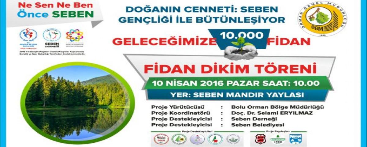 ‘’Doğa’nın Cenneti: Seben Gençliği İle Bütünleşiyor’’ projesi çerçevesinde, ‘’Geleceğimize 10 Bin Fidan’’ sloganı ile yapılacak fidan dikim töreninin proje yürütücüsü olarak Bolu Orman Bölge Müdürlüğü belirlenirken, projenin koordinasyonu Seben Derneği tarafından gerçekleştiriliyor.