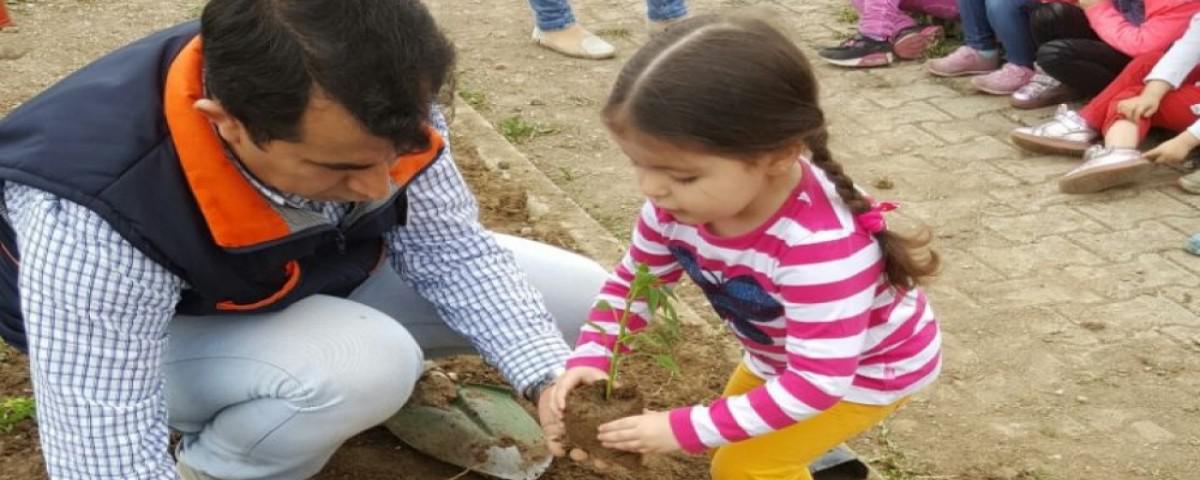 Hayat yolundaki adımlarını yeni atmaya başlayan, farklı pencerelerin varlığını yeni yeni keşfetmeye başlayan minik öğrencilerimiz için okul bahçesinde hazırlanan toprağa ekim uygulaması gerçekleştirdi. Minicik elleri ile domates, biber, çilek fidelerini toprak ile buluştururken aslında bir sofralarında tüketmiş olduğu gıdalarında kaynağını keşfetme şansı buldular. Sırasıyla soğan, fasulye, salatalık tohumları toprak ile buluşurken minik ellerin gösterdiği özen ve itina, yüzlerindeki tebessüm günü anlamlı kılan kareleri oluşturdu. Bizler minik yüreklerin geleceklerine dair farklı bir pencere aralarken miniklerimiz toprak ve insan arasındaki ayrılmaz bağ konusunda bir nebzede olsa fikir sahibi oldu.