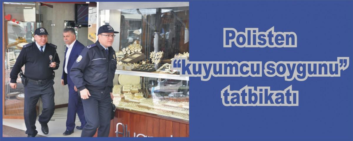 Tatbikat senaryosu gereği ellerinde silah bulunan kar maskeli ve kot pantolonlu 2 kişinin Büyük Cami Mahallesi'nde bulunan bir kuyumcuya girdiği ihbarı alan polis ekipleri olay yerine hareket etti.