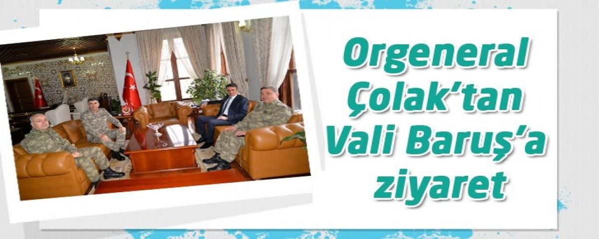 Valilik ziyaretinde ilk olarak Valilik Şeref Defterini imzalayan Orgeneral Çolak, daha sonra beraberindekiler ile birlikte Vali Baruş’un makamına geçti.