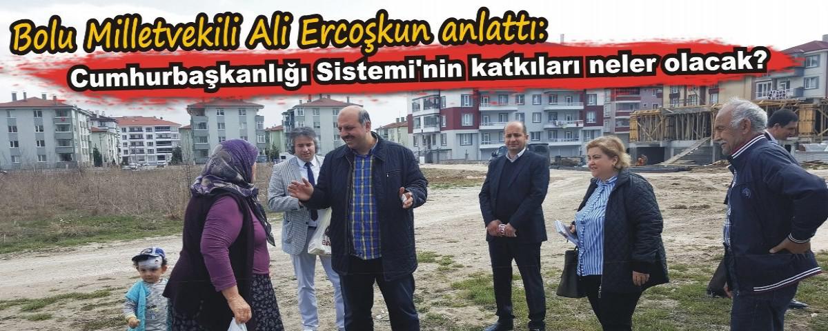 Milletvekili Ercoşkun, açıklamalarının devamında, "Yeni sistem kesintisiz 5 yıllık hizmet süresi sağlıyor" dedi ve bu düzenlemenin sağlayacağı kazanımları şöyle sıraladı: "Cumhurbaşkanlığı Sistemi ile kesintisiz 5 yıllık hizmet süresi sağlanması sayesinde devamlı hale gelecek siyasi istikrar insanımızın hayatına etki eden tüm alanlara yansıyacak. Ekonomik istikrarı, sosyal istikrarı iyi yönde etkileyecek. Ekonomik istikrar büyümeyi, büyüme istihdamı, istihdam refah seviyesi artacak. Huzur, güven, barış ve kardeşliğimiz pekişecek. Vatandaşımız, güçlenen ekonomi dolayısıyla oluşan refahtan bireysel olarak vatandaşlarımız daha fazla pay alacak. Seçimlerin 5 yılda bir yapılacak olması ile yürütmede ve yasamada 5 yıllık istikrar sağlayacak. 5 yıllık siyasal sistem istikrarı, iş, istidam ve mali piyasalara pozitif etki edecek ve sinerji oluşturacak.