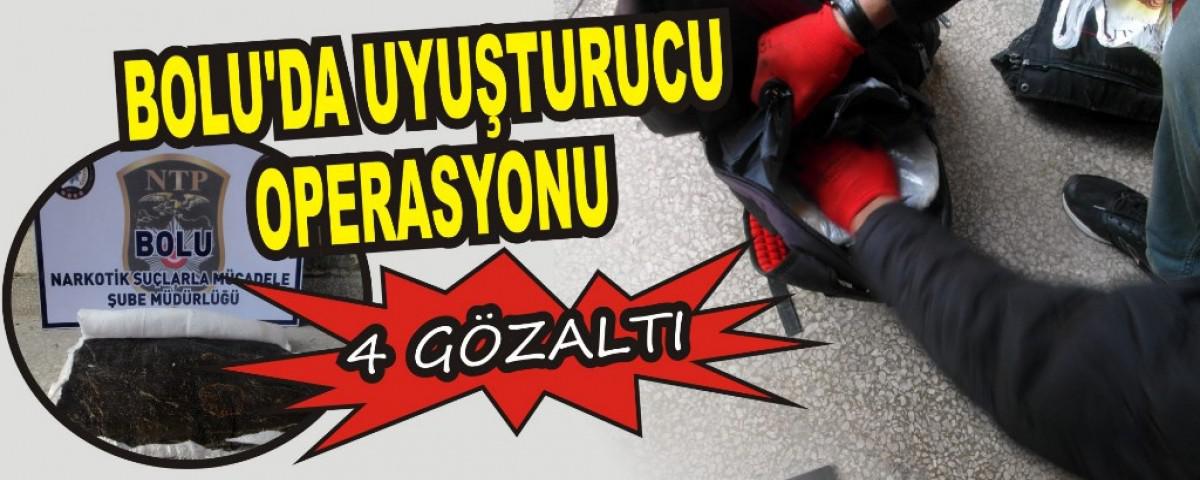 Bolu’da, İl Emniyet Müdürlüğü Narkotik Suçlarla Mücadele Şube Müdürlüğü ekipleri, alınan ihbar üzerine, TEM Otoyolu üzerinde içerisinde 2’si yabancı uyruklu 4 kişinin olduğu otomobili durdurdu. Otomobil içerisinde yapılan aramada, aracın bagajında bulunan çanta içerisinde gizlenmiş halde piyasa değeri 225 bin lira olan 3 kilo 7,88 gram reçine esrar maddesi ele geçirildi. Olayla ilgili, S.G (22), E.G (27) ve yabancı uyruklu N. R.C. (22) ile R.N. (23) isimli şahıslar gözaltına alındı. Şahısların emniyetteki işlemlerinin devam ettiği öğrenildi.