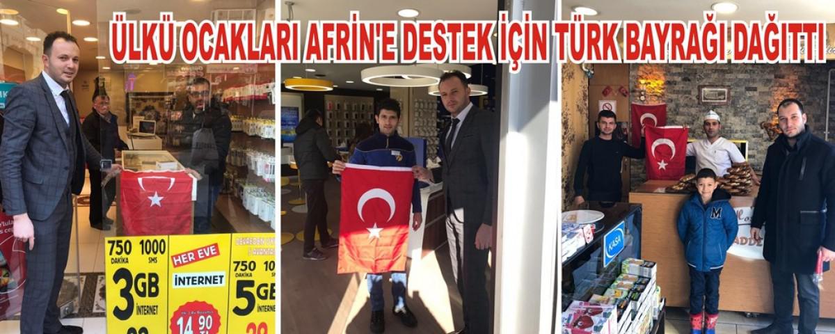 Bolu Ülkü ocakları İl Başkanlığı Ülkü Ocakları Genel Başkanı Olcay Kılavuz’un çağrısı üzerine Zeytin Dalı operasyonuna destek amacıyla İzzet Baysal Caddesinde bulunan esnafa Türk bayrağı dağıttı. Şanlı Türk bayrağının gök kubbede ilelebet dalgalanacağını ve Ezan-ı Muhammed’in semalarda duyulmasını hiç bir gücün engel olamayacağını söyleyen Bolu Ülkü Ocakları Başkanı İsmail Akgük; “ Ülkü Ocakları Bolu İl Başkanlığı olarak Ülkü Ocakları Genel Başkanımız Olcay Kılavuz beyin çağrısı üzerine Afrin bölgesinde Operasyon da bulanan Kahraman Türk Askerimize Yiğit Mehmetçiğimize destek olmak amacıyla ilimizde ve ilçelerimizde ev ve iş yerlerimizi Şanlı Türk Bayrağımız ile donatmak üzere toplam 5000 adet Türk bayrağımızı esnaflarımıza hediye ederek iş yerlerimize asmalarını rica ettik. Bizleri memnuniyet ile karşılayan kıymetli Bolu esnafımıza,değerli çalışanlarına teşekkür eder Milli hassasiyetlerinden dolayı tebrik eder hayırlı işler dilerim.Şanlı Türk bayrağımızın gök kubbede ilelebet dalgalanması,Ezan-ı Muhammed’in semalarda duyulmasını hiç bir gücün engel olamayacağını,Türk’ün ayak bastığı her yerin Yurt olup adalet ile yönetileceği tarihte olduğu gibi şimdi de gösterilecektir.Ülkü Ocakları olarak Bayrak,Vatan ve millet uğruna arkamıza bakmayacağımızı,kirli ellerini kutsalımıza uzatanın ellerini kıracağımızın bilinmesini isteriz.Bu vesile ile Operasyonda bulunan tüm güvenlik güçlerimize kahraman Mehmetçiğimize Yüce Allah’tan muzaffer olmalarını diler,Şehitlerimize Allah’tan Rahmet kederli ailelerine başsağlığı,gazilerimize acil şifalar dileriz” ifadelerini kullandı.