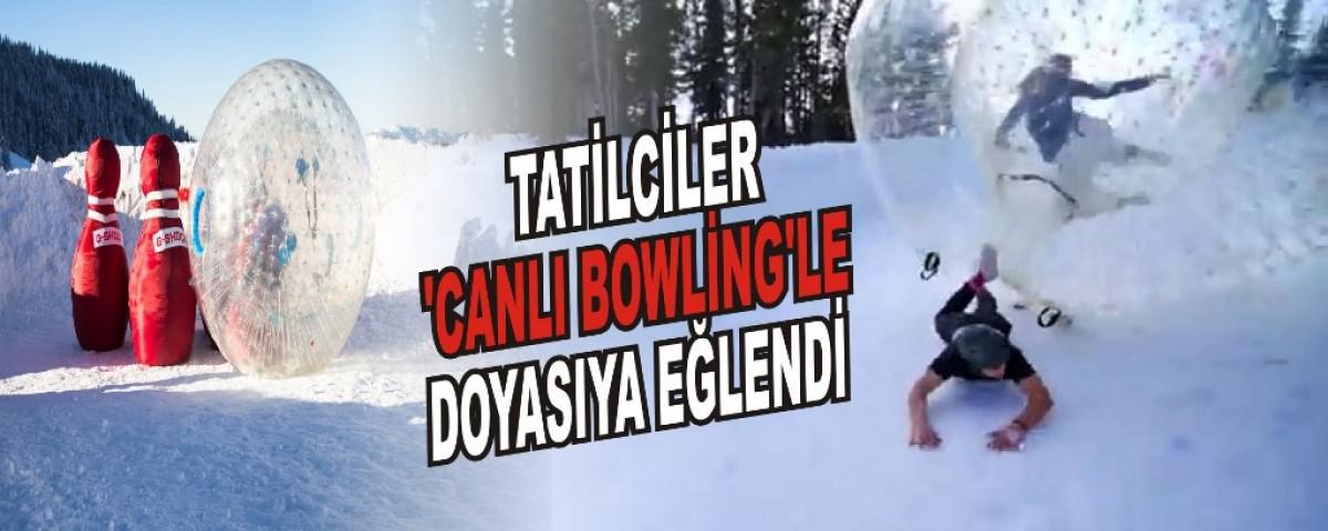 Tatil için Kartalkaya’ya gelen binlerce kişinin izlediği ve keyifli anların yaşadığı ‘Canlı Bowling’ etkinliğinde, cesaretini test etmek isteyen yüzlerce tatilci de şeffaf topların içine girerek labutları devirmek için çaba gösterdi.
