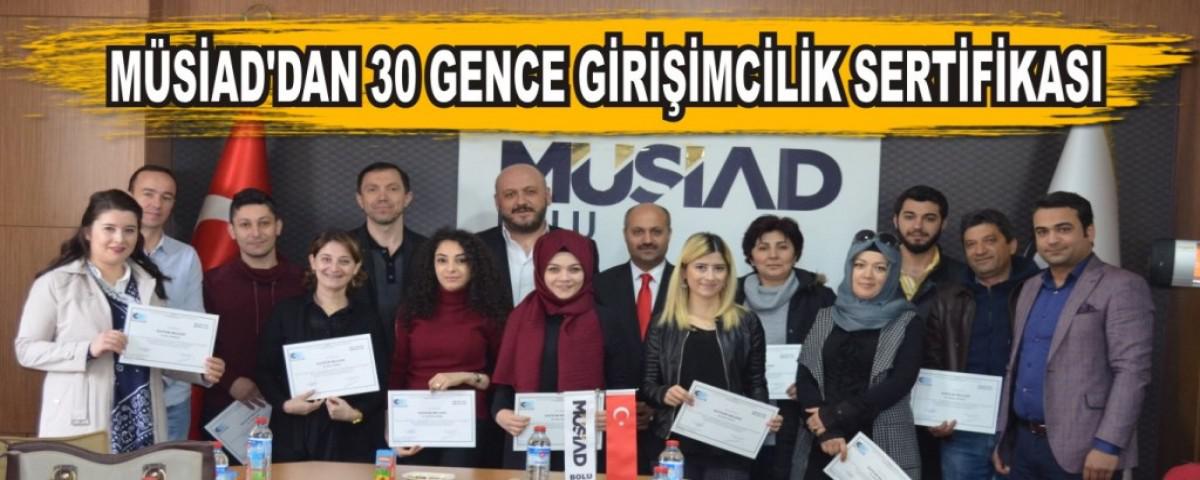 MÜSİAD Bolu Şubesi Konferans Salonunda gerçekleştirilen sertifika törenine, MÜSİAD Bolu Şube Başkanı Abdullah Abat, Yönetim Kurulu üyeleri Davut Uzun, Ayhan Eren, Ali Abbas Açıkol ve kurs hocası Sezer Dizmen katıldı.