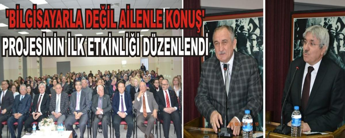 Saygı duruşu ve istiklal marşı ile başlayan etkinlik Kent Konseyi Yürütme Kurulu Üyesi Remzi Kocaman’ın konu ile ilgili konuşmasıyla devam etti. Kocaman’ın konuşmasının ardında etkinlik ile ilgili konuşan Milli Eğitim Müdürü Yusuf Cengiz konuşmasında, “Bu gün burada İl Milli Eğitim Müdürlüğü, Abant İzzet Baysal Üniversitesi ve Belediye Başkanlığı Kent Konseyi ortaklığı ile bir projenin açılışındayız. Bilgisayarla değil ailenle konuş projesi. Tabi biz okullarımızda normal rutin çalışlarımızı yürütüyoruz. Misyon olarak da 6,18 yaş gurubu arasındaki Ana Okulu, ilkokul çocukların eğitiminden sorumluyuz. Ancak velilerimize yönelik olarak çocuklarımızın psikolojileri ile ilgili sorunları ile ilgili çok fazla eğitimler, seminerler yapamadığımızı ifade etmek isterim. Bu noktada teşekkür etmek istediğim başta belediye başkanımız ve kent konseyi üyeleri olmak üzere değerli dekanımız Prof. Dr. Hamit Çoşkun’a teşekkür ediyorum. Kent konseyimiz büyük bir sosyal sorumluluk örneği gösterdiler toplumsal bir soruna özellikle dikkat çekmek istediler. Bu nokta da enerjilerini bizimle paylaştılar ve bu projeyi birlikte beraber hayata geçirdik. Yine özellikle fen edebiyat fakültesi dekanımız Prof. Dr. Hamit Çoşkun hocamız bu kadar yoğun mesaisi içersinde bizlere zaman ayardı. Ve yaklaşık 13 okulumuzda 10 tanesi lise ve dengi okullar 3 tanede ortaokul olmak üzere 13 okulumuzda özellikler çocuklarımızın kişisel gelişimleri, aile içi iletişim, sınav kaygısı, verimli ders çalışma yolları internet bağımlılığı ile mücadele ve zamanlı alışkanlıklardan korunma konusunda bizleri aydınlatacaklar. İnşallah güzel bir çalışma olur. Çocuklar bizim en değerli varlıklarımız. Aile olarak en değerli varlıklarımız, millet olarak da çocuklar ve gençler geleceğimiz mimarları Kültürel ve tarihi mirasımızı onlara aktaracağız. Onlar ne kadar sağlıklı yetişirlerse gelecekte de o kadar güzel bir vatana kavuşuruz. O yüzden çocuklarımızın geleceği bizim için çok önemli. Sadece bilimsel becerileri değil onun yanında ruhsal ve fiziksel gelişimleri de önemli diye düşünüyorum. Ve bu öğrencilerimize karşı biliyoruz problemler var. Diyelim ki evlerimizde internet bağlanma noktasında çocuklara ulaşamıyoruz, onlara erişemiyoruz. Bu sorunu biliyoruz ama onları nasıl uzaklaştıracağız veya nasıl bir yön göstereceğiz konularında bırakın velileri biz eğitimciler olara da zaman zaman çaresiz kalıyoruz. Bu noktada değerli hocamız bizlere aydınlatacaklar. Hayırlı olmasını ve buradan güzel sonuçlar elde etmeyi umuyoruz” dedi.