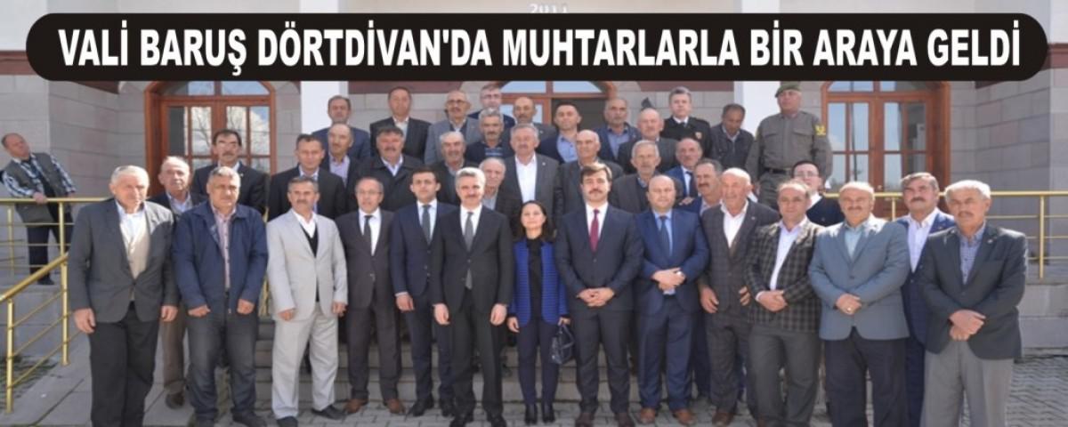 Dörtdivan İlçesinde Kaymakam Uğur Tutkan, Dörtdivan Belediye Başkanı Hasan Uzunoğlu ve daire müdürleri tarafından karşılanan Vali Baruş, ilçe ziyaretinde ilk olarak Kaymakamlığı ziyaret ederek ilçe ile ilgili brifing aldı.