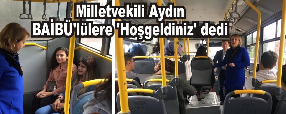 Ülkenin değişik bölgelerinden Bolu Abant İzzet Baysal Üniversitesi’nde eğitim görmeye gelen öğrenciler ile otobüsün içerisinde sohbet eden Aydın, öğrencilere Bolu’yu ve BAİBÜ’yü tercih etmelerinden dolayı ayrıca teşekkür etti. Aydın, "Tabiatın Kalbi olan bu güzel şehrimizde siz birbirinden değerli gençlere ev sahipliği yapmak bizlere ayrıca mutluluk ve heyecan veriyor. Sizler bizlerin ve bu ülkenin geleceği, güvencesisiniz hatta bugünüsünüz ve Türkiye sizlerin ellerinizde yükselecek. Üniversitemiz de her yönüyle donanımlı ve kaliteli bir üniversite. Cumhurbaşkanımız ve Genel Başkanımız Sn. Recep Tayyip Erdoğan’ın da bugün açıkladığı üzere devletimizin öğrencilere verdiği kredi ve burs miktarı; lisansta 500 lira, yüksek lisansta 1000 lira, doktoroda 1500 liraya yükselecek. Bu vesileyle Bolulu öğrencilerimize de Cumhurbaşkanımız Sn. Recep Tayyip Erdoğan’ın müjdesini bir kez daha duyuruyoruz. Bu vesileyle bizler her daim sizlerin yanınızda olmaya devam edeceğiz. Herhangi bir istek veya talepleriniz olması halinde bunları bizlere her zaman iletebilirsiniz. Üniversite okuyan sizlerin yaşıtı bir erkek evladımın olması hasebiyle beni bir Anne olarak görerek, her türlü taleplerinizden memnuniyet duyacağımı belirtiyor, şimdiden sizlere eğitim-öğretiminiz başta olmak üzere hayatınızda başarılar diliyorum" dedi. Mihrali Emrah Çiftçi