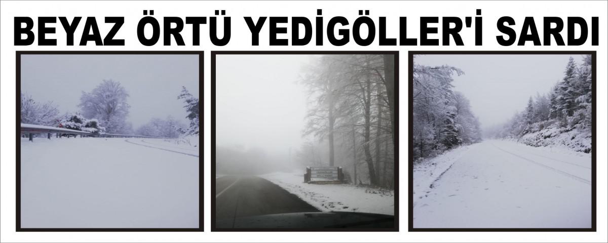 Bolu’nun gözde turizm merkezlerinden olan ve sonbaharın tüm renklerini taşıyan Yedigöller Milli Parkı, gece saatlerinde yağmaya başlayan kara teslim oldu. Park içi ve yolu beyaza bürünürken, yolların tamamı karla kaplandı.